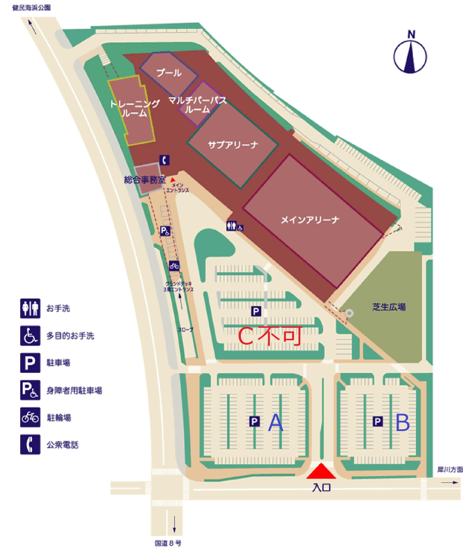 大会当日は、A・B駐車場をご利用ください、乗合にご協力お願い致します。